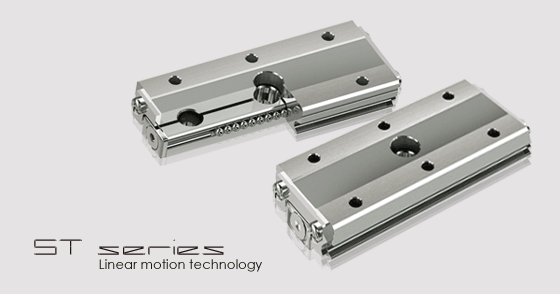 ST 型有限行程微型滑軌採二列式滾珠無循環設計,滾珠軌道設計採哥德式45度四方向等負荷結構;在有限空間限制下,使用較大尺寸鋼珠,以提高負荷能力,充分展現高負荷、高扭矩功能。