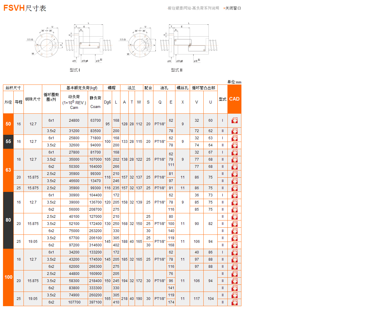 PMI 針對FSVH型式進行(鋼珠與螺紋的接觸角、鋼珠直徑、回流方式)的改善,提高與舊型式(FSVC)差異2倍以上之額定動負荷。(PMI滾珠絲桿詳細簡介